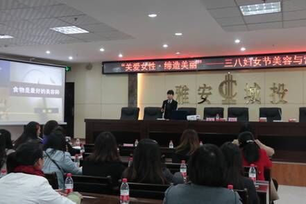 為慶!叭恕眹H勞動婦女節(jié),提高女性自我審美和保健水平,展示新時代女性積極向上的精神風貌,3月8日上午,城投公司、雅投公司、煙草公司聯(lián)合舉辦三八國際勞動婦女節(jié)美容與營養(yǎng)講座,專題對食物營養(yǎng)素、水果蔬菜、酸奶三方面進行細致講解。