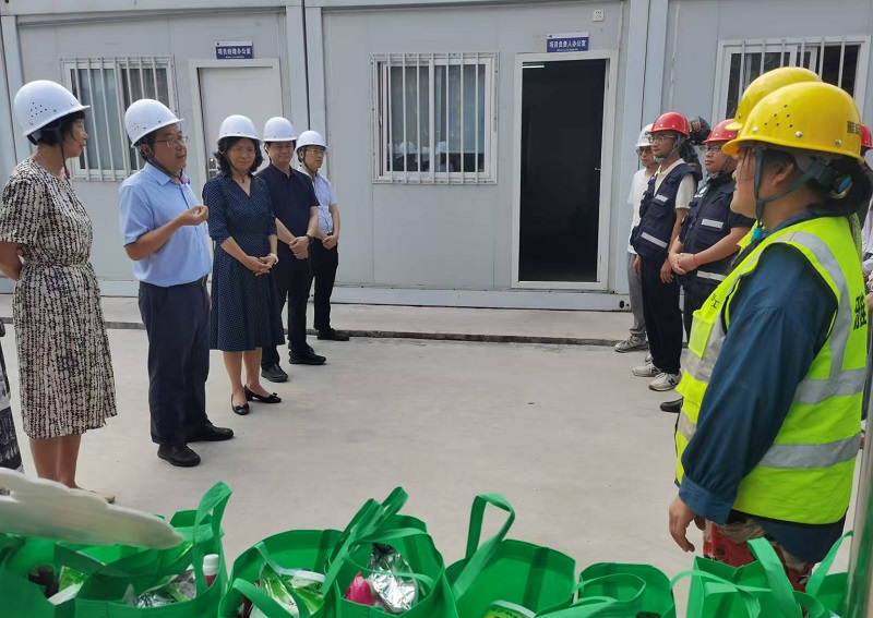 慰問組一行深入項目施工現(xiàn)場,詳細了解了項目的通風降溫設(shè)施、防暑藥品配備、清涼飲品供應、工人作息時間調(diào)整等關(guān)鍵防暑措施落實情況,并對施工現(xiàn)場的安全防護設(shè)施進行了檢查。