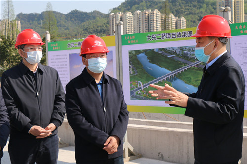 3月19日,副省長(zhǎng)楊洪波一行赴雅安市調(diào)研重點(diǎn)項(xiàng)目推進(jìn)工作,調(diào)研大興二橋項(xiàng)目建設(shè)情況,市委書記蘭開馳,副市長(zhǎng)張橋陪同調(diào)研。