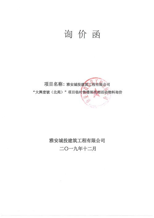 大興壹號(hào)(北苑)項(xiàng)目臨時(shí)售樓部亮相活動(dòng)物料詢價(jià)函