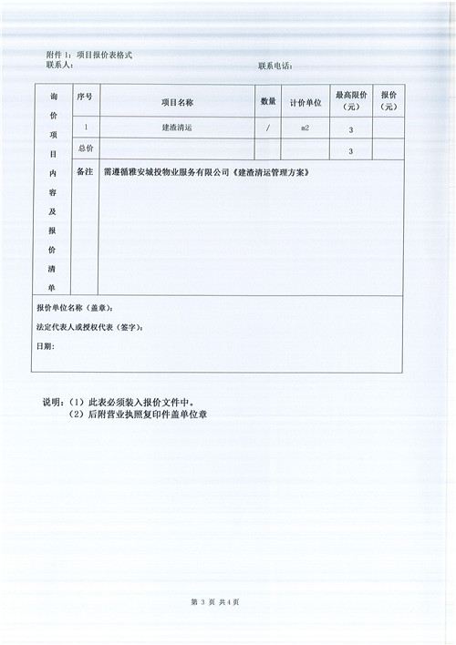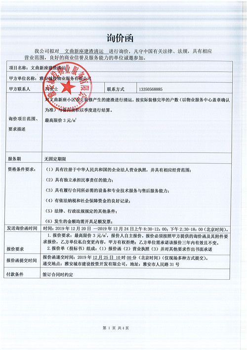 文曲新座建渣清運詢價函