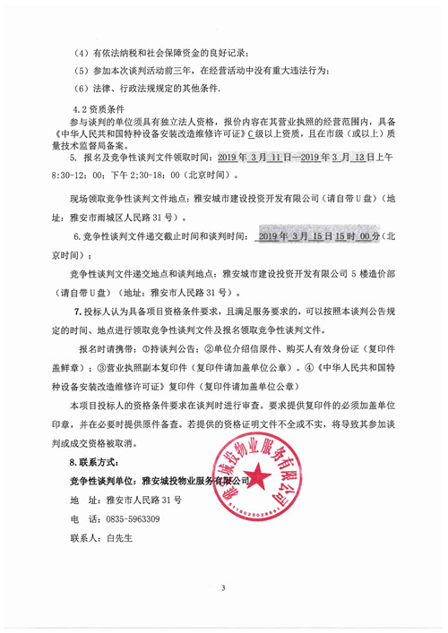 大興公租房小區(qū)電梯維保服務項目的競爭性談判公告