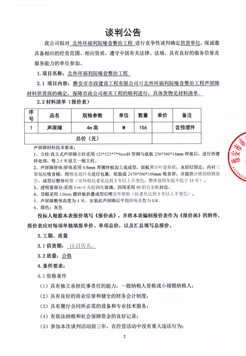 市政公司北外環(huán)福利院噪音整治工程競(jìng)爭(zhēng)性談判公告
