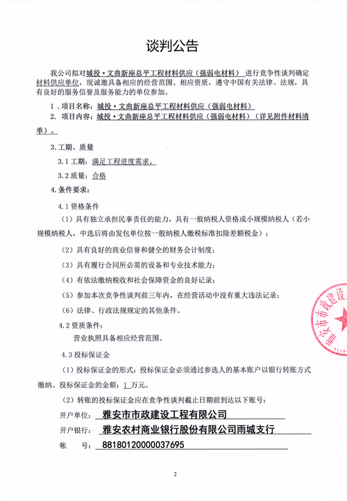 城投·文曲新座總平工程材料供應(yīng)(強(qiáng)弱電材料)競爭性談判公告