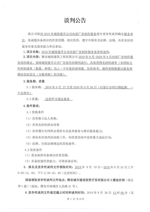 2019年城投建開公司內(nèi)部廣告制作服務(wù)競(jìng)爭(zhēng)性談判公告