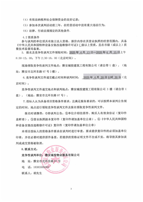 城投物業(yè)公司大興公租房小區(qū)電梯維保服務(wù)項(xiàng)目競爭性談判公告(第二次)