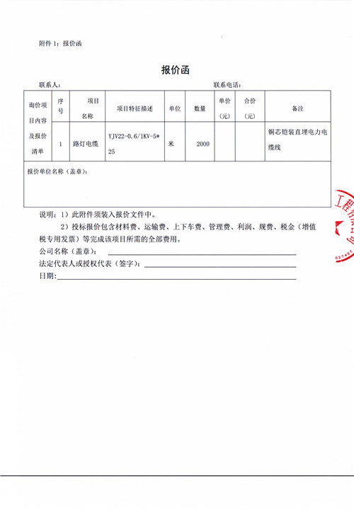 雅安市大興片區(qū)城市道路雨城大道一、二標(biāo)段(含綜合管廊)道路建設(shè)工程路燈電纜詢價(jià)函
