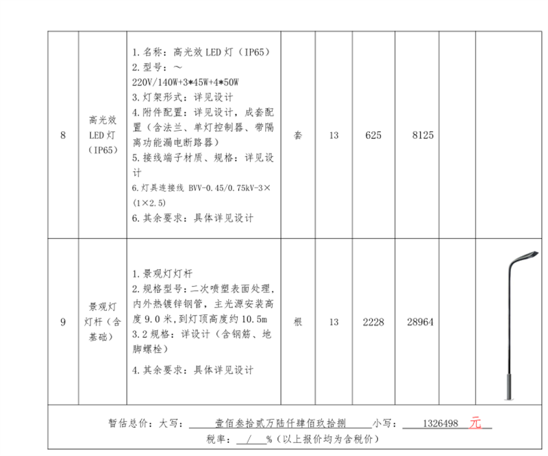 2.1項(xiàng)目內(nèi)容:雅安文教新城市政道路恢復(fù)重建項(xiàng)目(一標(biāo)段)照明工程材料采購供貨商的確定,保障市政公司相關(guān)工程的順利進(jìn)行,具體貨物見材料清單(本招標(biāo)文件所附清單(數(shù)量、規(guī)格、種類)僅供參考,最終采購數(shù)量實(shí)際發(fā)生(分散采購)的為準(zhǔn))。