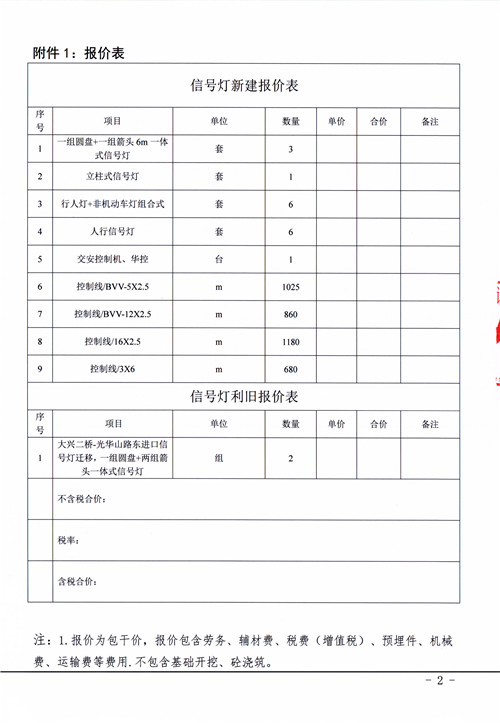 雅安市市政建設(shè)工程有限公司雅安市光華山路與大興二橋交叉口交通工程信號燈采購安裝詢價(jià)函