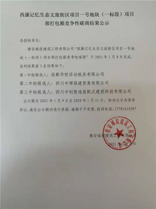 西康記憶生態(tài)文旅街區(qū)項目一號地塊(一標段)項目部打包箱競爭性磋商結(jié)果公示