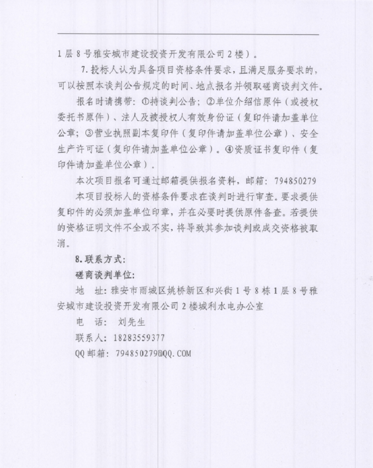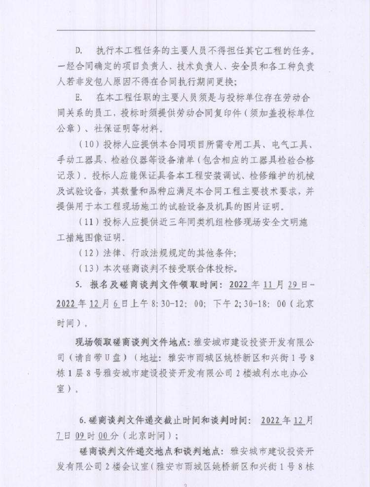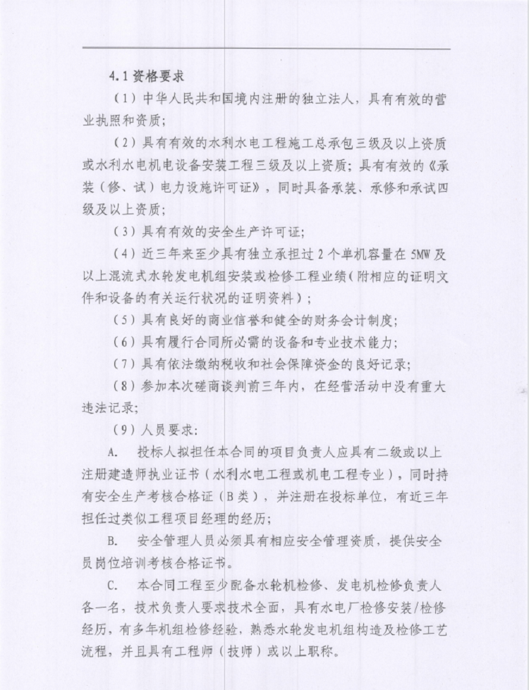雅安城利水電公司2022年度水輪發(fā)電機組檢修工程談判磋商公告