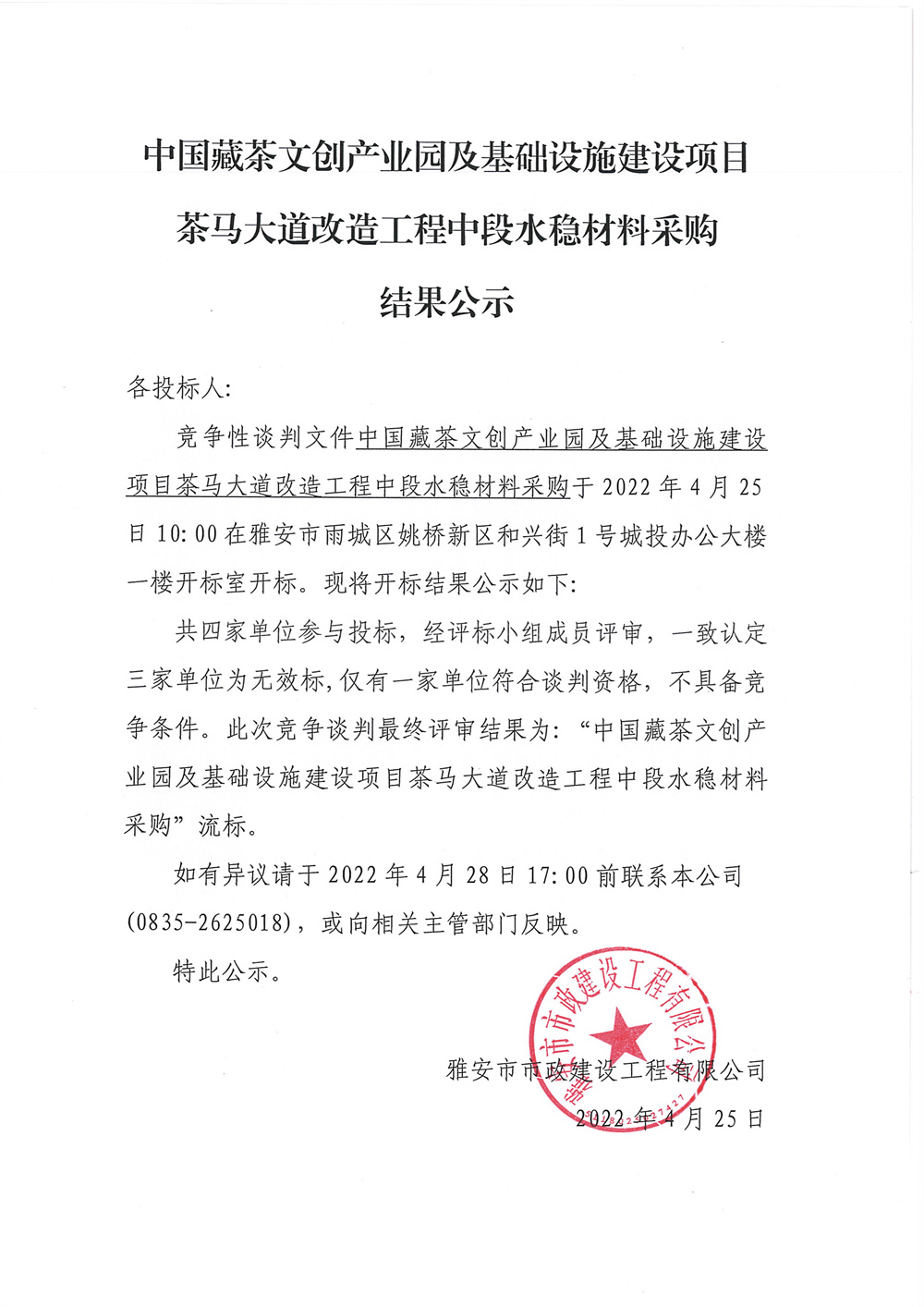 中國藏茶文創(chuàng)產(chǎn)業(yè)園及基礎(chǔ)設(shè)施建設(shè)項(xiàng)目茶馬大道改造工程中段水穩(wěn)材料采購競爭性談判結(jié)果公示