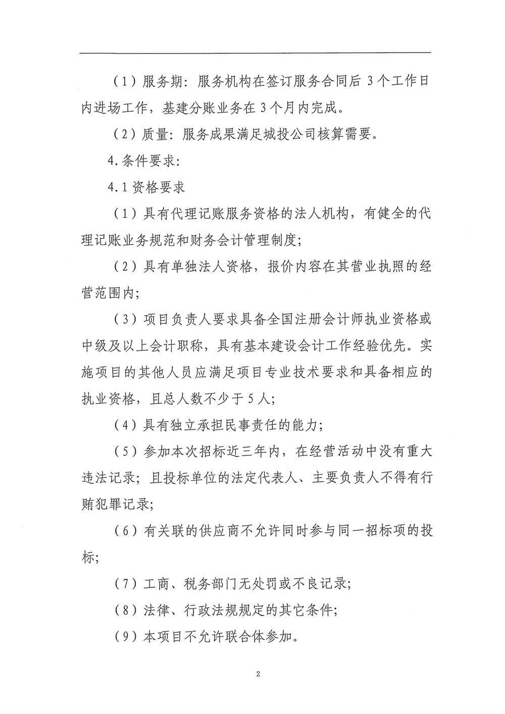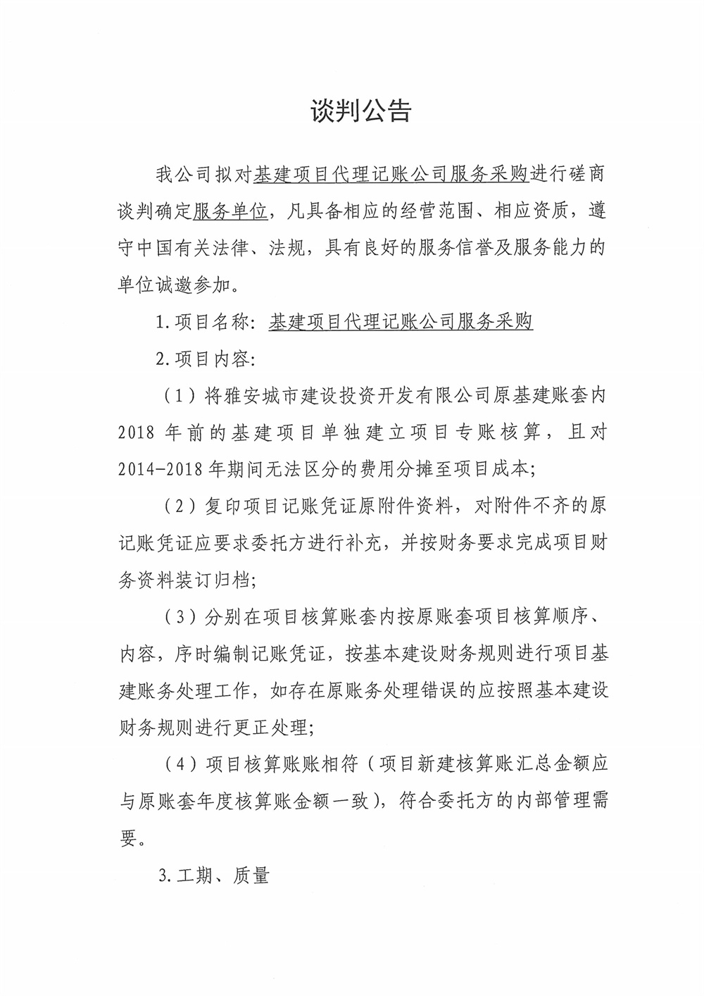 城投公司基建項目代理記賬公司服務(wù)采購磋商談判公告