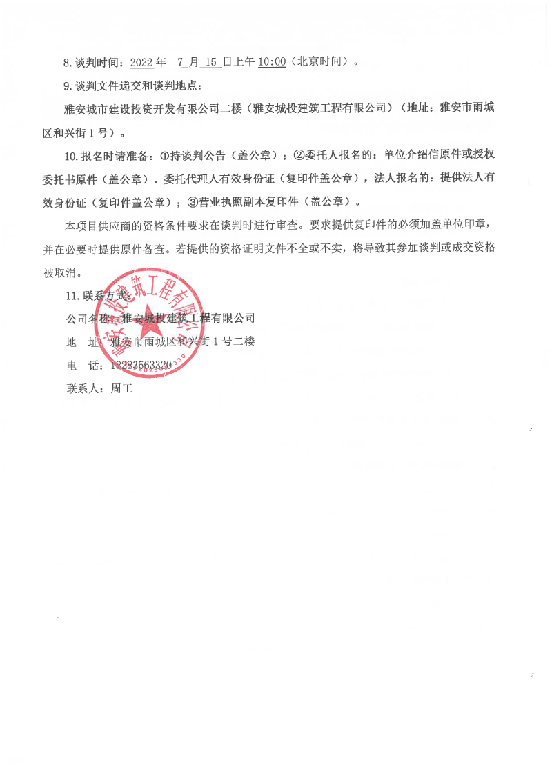 雅安市西康記憶生態(tài)文旅街區(qū)項(xiàng)目一號(hào)地塊2#、5#、6#樓預(yù)拌混凝土、砂漿采購合作談判公告