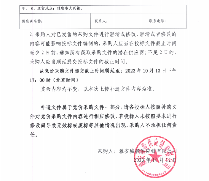 材料競價(jià)采購補(bǔ)遺(一)