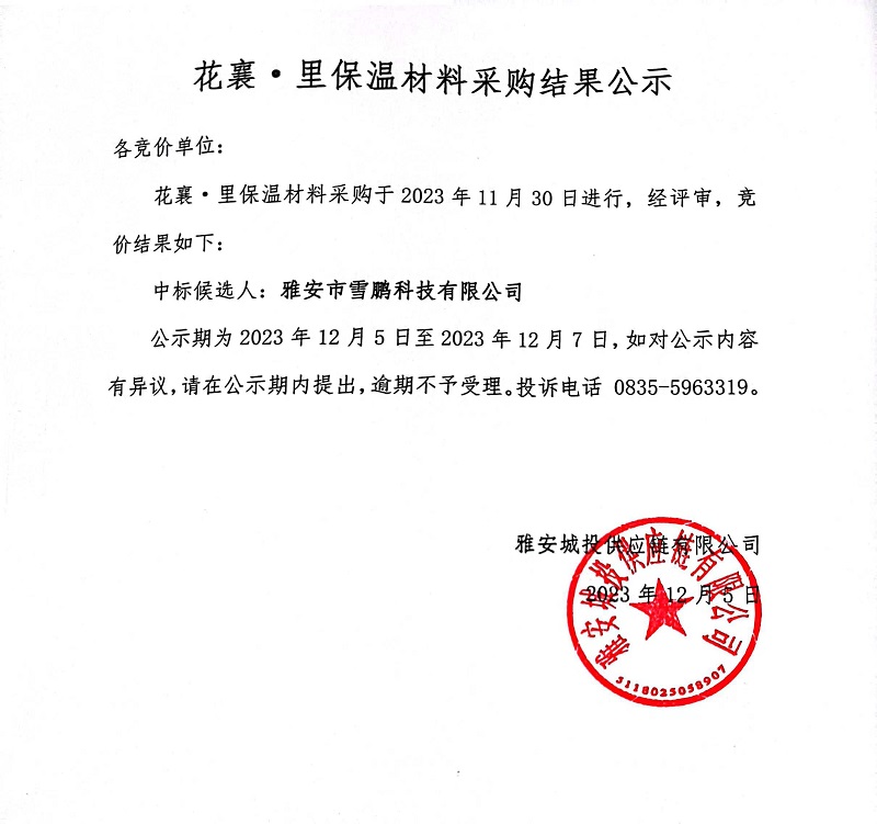花襄·里保溫材料采購結果公示