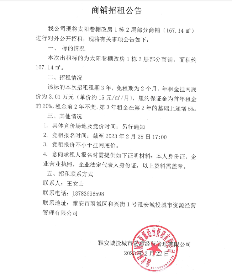 太陽(yáng)巷棚改房1棟2層部分商鋪招租公告