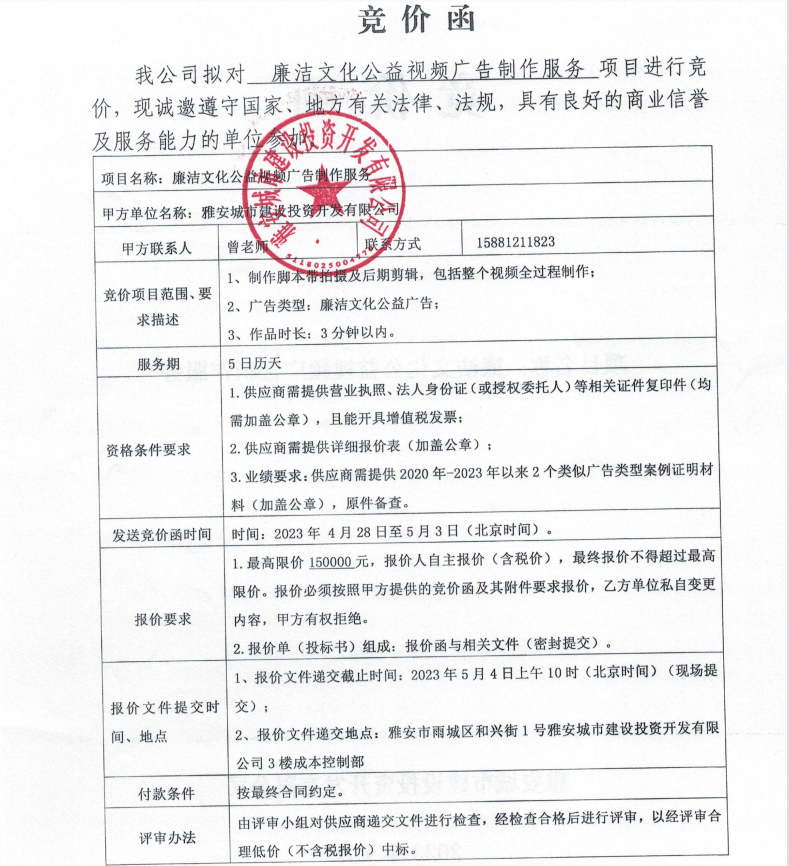 廉潔文化公益視頻廣告制作服務(wù)競(jìng)價(jià)公告