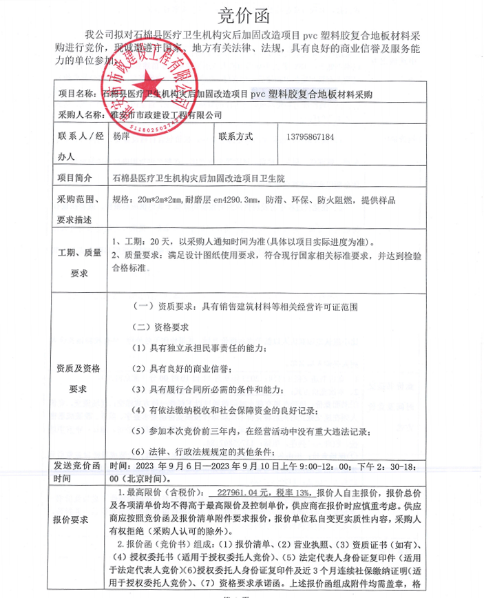 石棉縣醫(yī)療衛(wèi)生機(jī)構(gòu)災(zāi)后加固改造項(xiàng)目pvc塑料膠復(fù)合地板采購競價(jià)公告