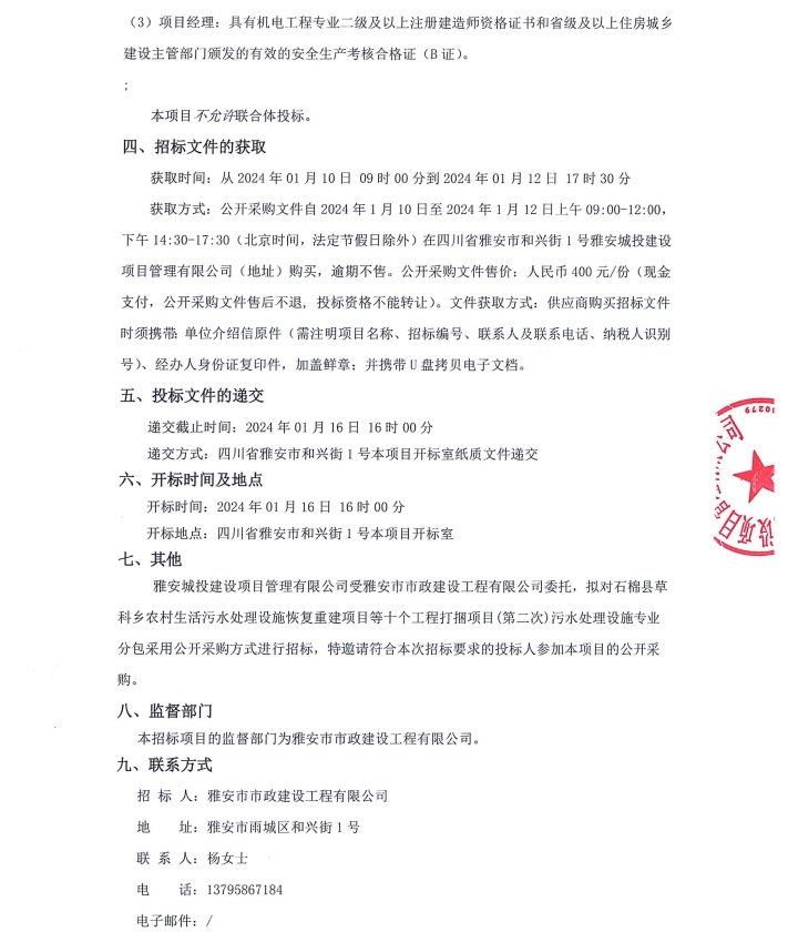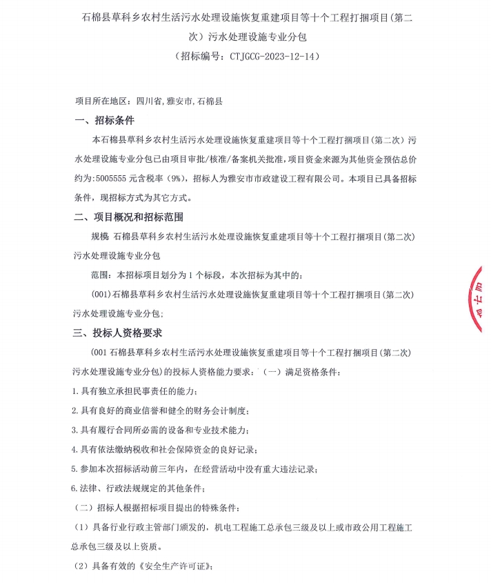 石棉縣草科鄉(xiāng)農(nóng)村生活污水處理設(shè)施恢復(fù)重建項(xiàng)目等十個(gè)工程打捆項(xiàng)目(第二次)污水處理設(shè)施專業(yè)分包采購(gòu)公告
