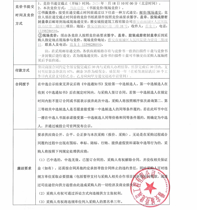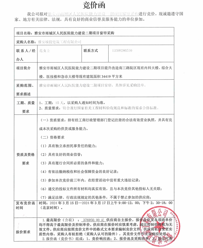 雅安市雨城區(qū)人民醫(yī)院能力建設(shè)二期項目窗簾采購競價公告