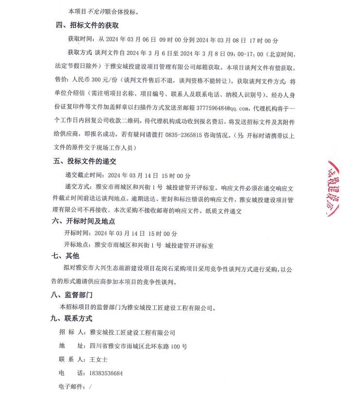雅安市大興生態(tài)旅游建設(shè)項(xiàng)目花崗石采購項(xiàng)目公告