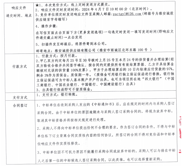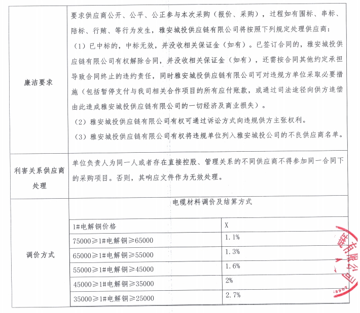 雅安城投供應(yīng)鏈有限公司電線電纜采購(gòu)競(jìng)價(jià)公告