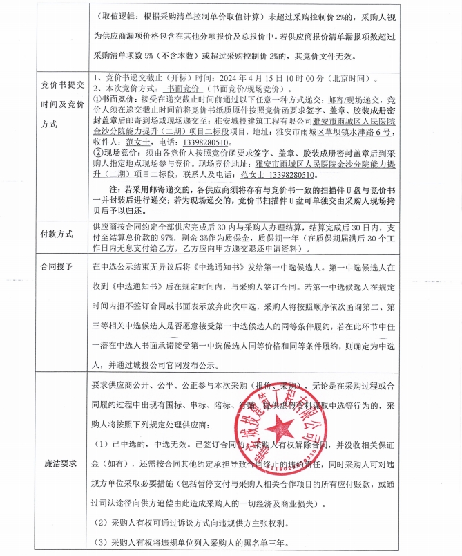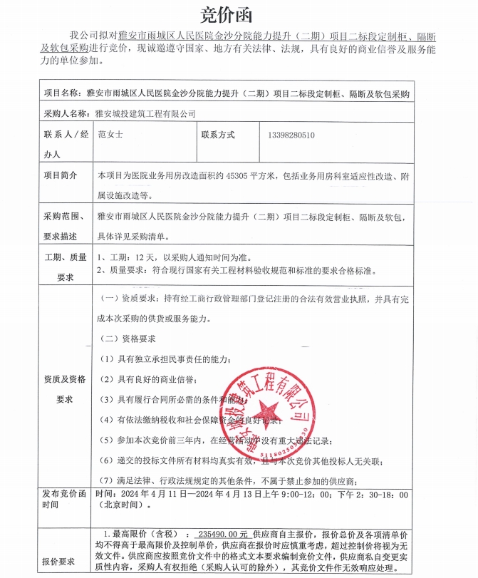 雅安市雨城人民醫(yī)院金沙分院能力提升(二期)項目二標(biāo)段定制柜、隔斷及軟包采購競價公告
