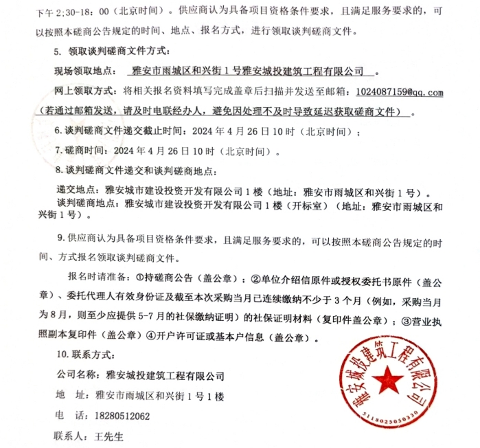 雅州壹號(hào)院亮化工程材料(含安裝)采購(gòu)磋商公告
