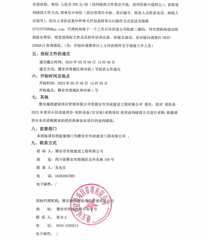滎經(jīng)縣2023年老舊小區(qū)改造項目安防設備(含安裝)采購項目公告