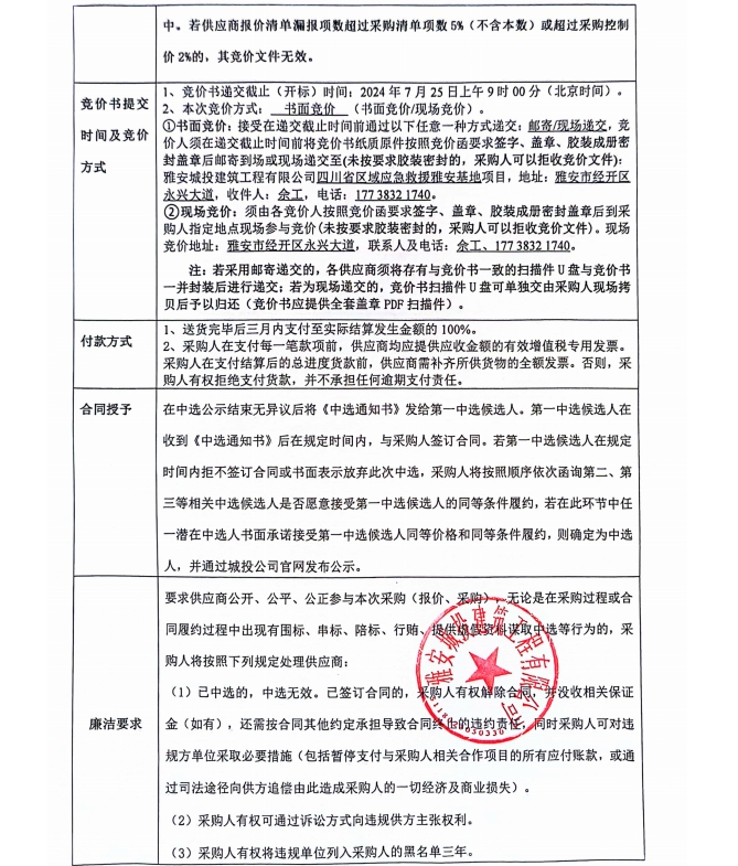 四川省區(qū)域應急救援雅安基地項目主體、臨邊修復整改材料采購競價公告