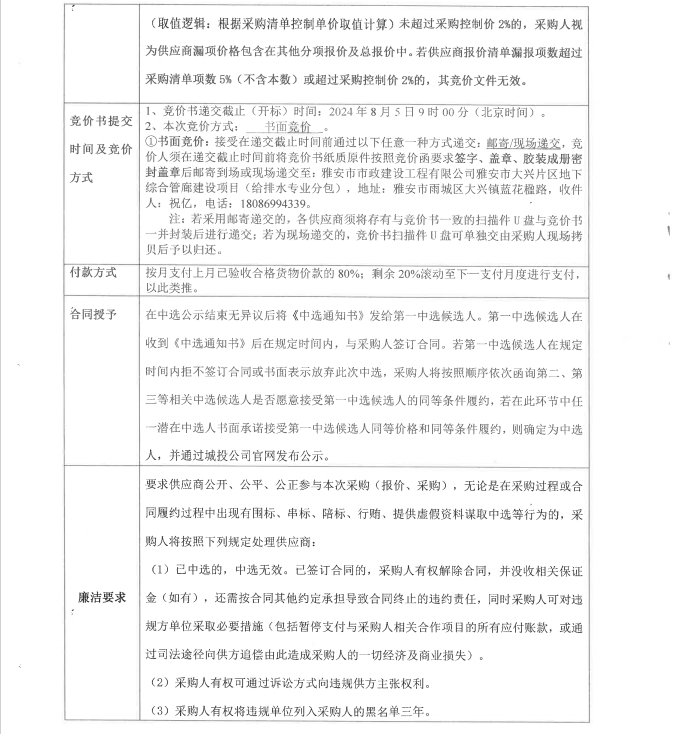 雅安市大興片區(qū)地下綜合管廊建設項目給排水專業(yè)分包管配件及閘閥材料采購競價公告