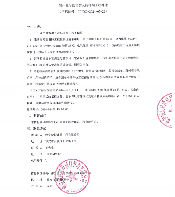 雅州壹號院消防及防排煙工程補(bǔ)遺