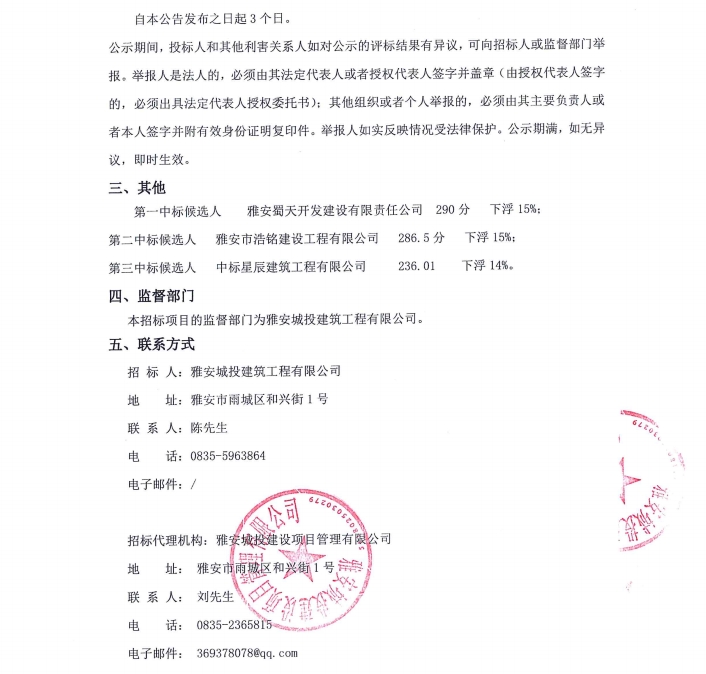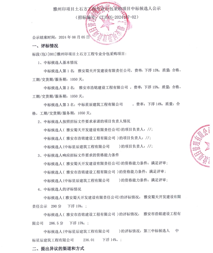 雅州印項(xiàng)目土石方工程專業(yè)分包采購(gòu)項(xiàng)目中標(biāo)候選人公示