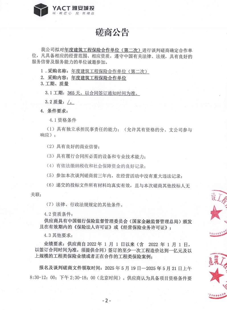 年度建筑工程保險合作單位(第二次)磋商公告