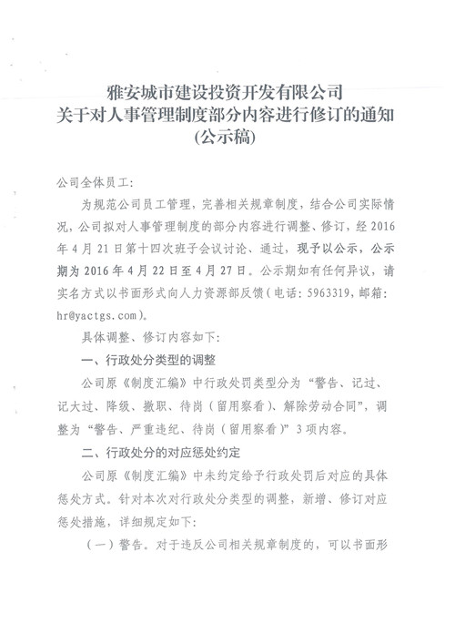 關(guān)于對人事管理制度部分內(nèi)容進(jìn)行修訂的通知